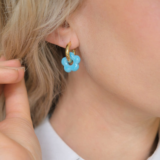 Flower Infinity Earrings - Blue/Gold Vermeil