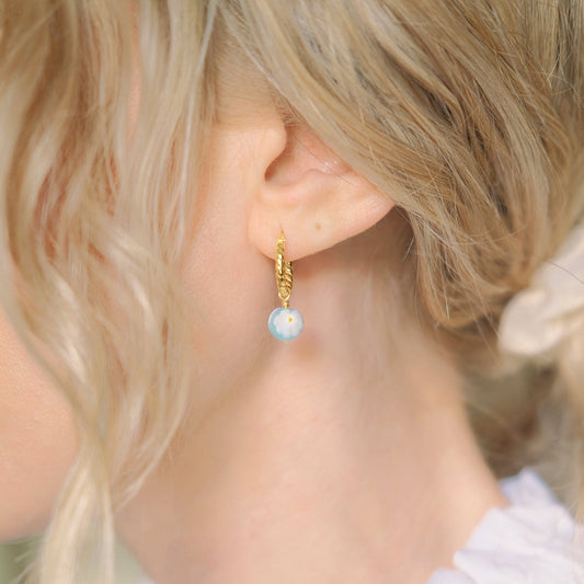Daisy Rope Twist Hoops Earrings - Aqua/Gold vermeil