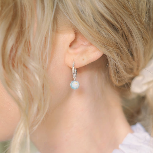 Daisy Rope Twist Hoops Earrings - Aqua/Sterling Silver