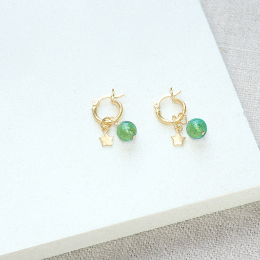 Shine On Huggie Earrings - Green/Gold Vermeil