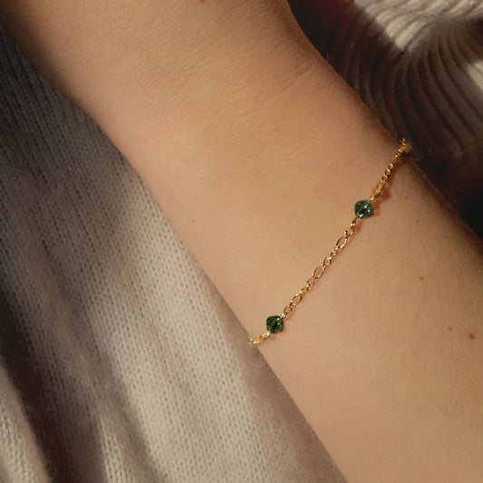 Stardrop Figaro Chain Bracelet - Emerald Green/Gold Vermeil