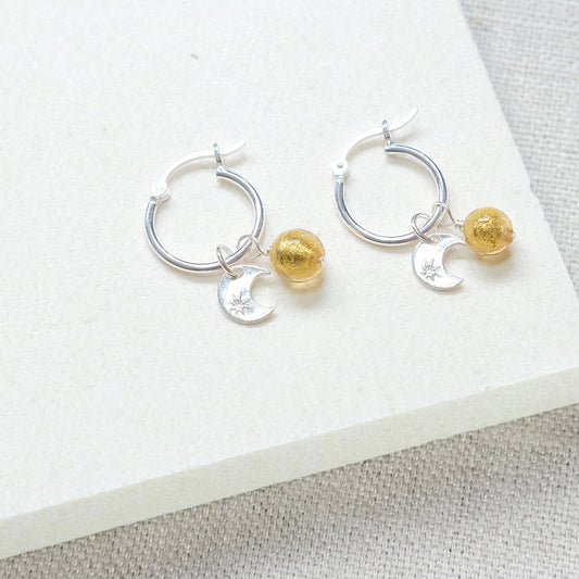 Sun and Moon Hoop Earrings - Gold Vermeil