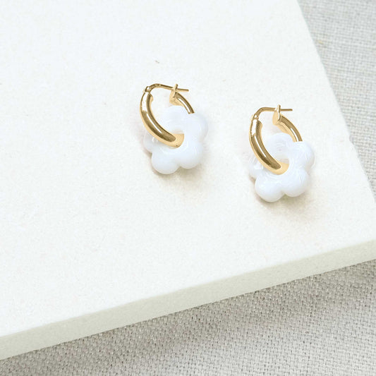 Daisy Rope Twist Hoops Earrings - Aqua/Gold vermeil