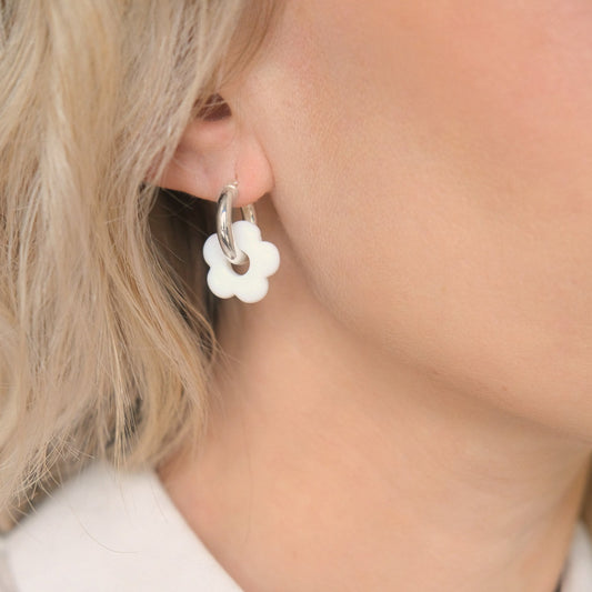 Daisy Rope Twist Hoops Earrings - Pink/Sterling Silver