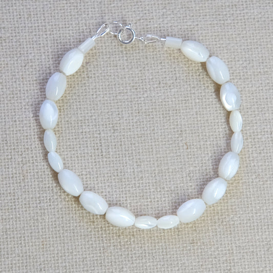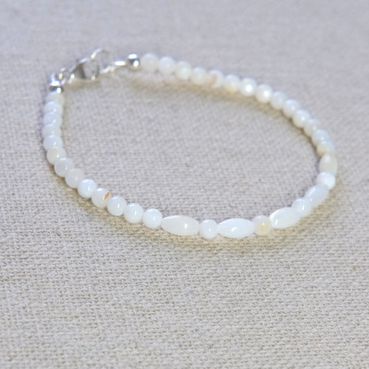 Mother of Pearl Beaded Bracelet - Sterling Silver 1
