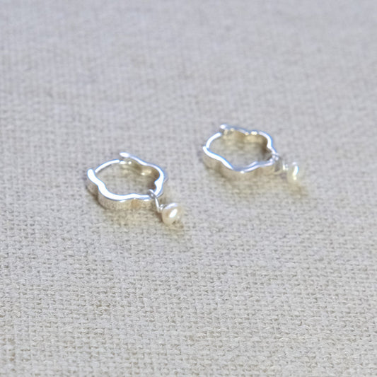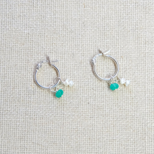 Gemstone and Pearl Hoops Earrings - Sterling Silver