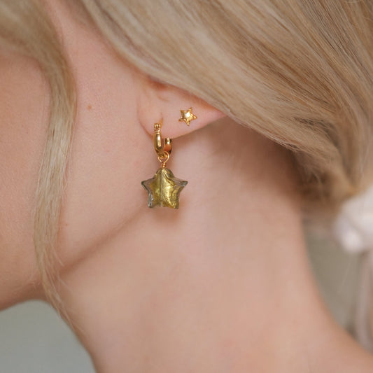 Sun Rock and Star Dangle Two-Piece Earrings - Gold vermeil