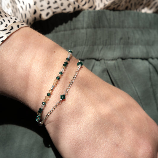 Stardrop Figaro Chain Bracelet - Emerald/Sterling Silver