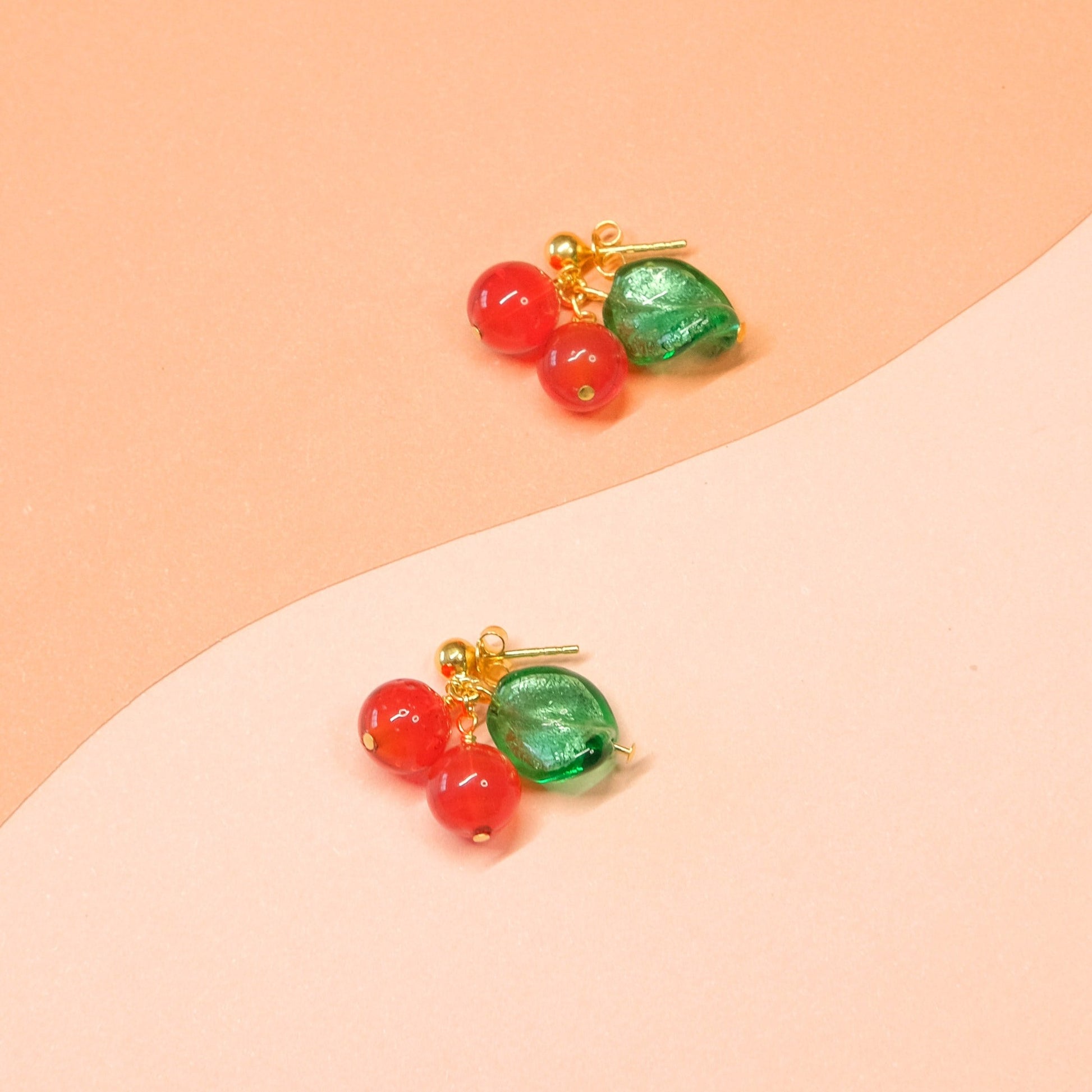 Amarena Cherry Stud Earrings - Red/Green/Gold Vermeil