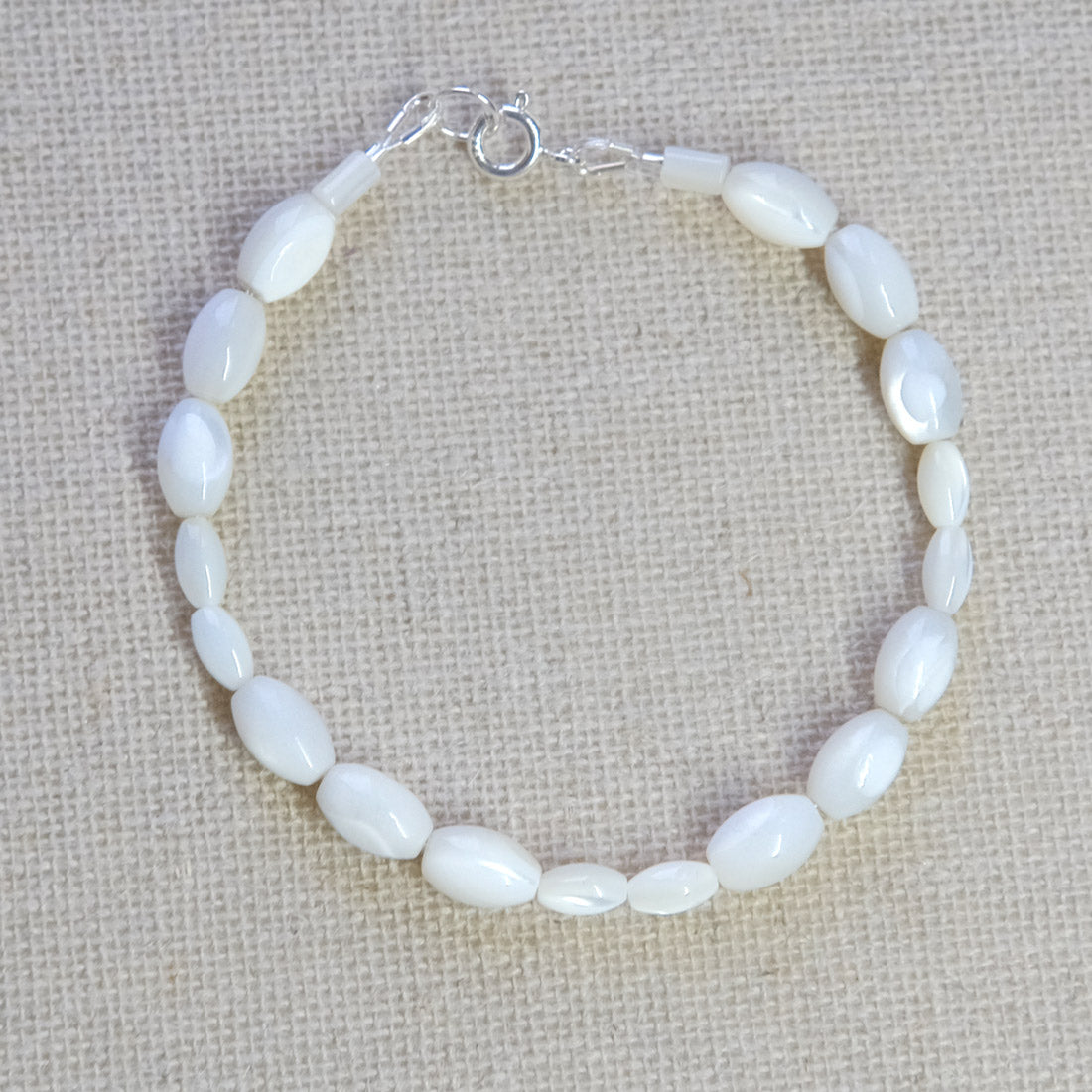 Mother of Pearl Beaded Bracelet - Sterling Silver 2