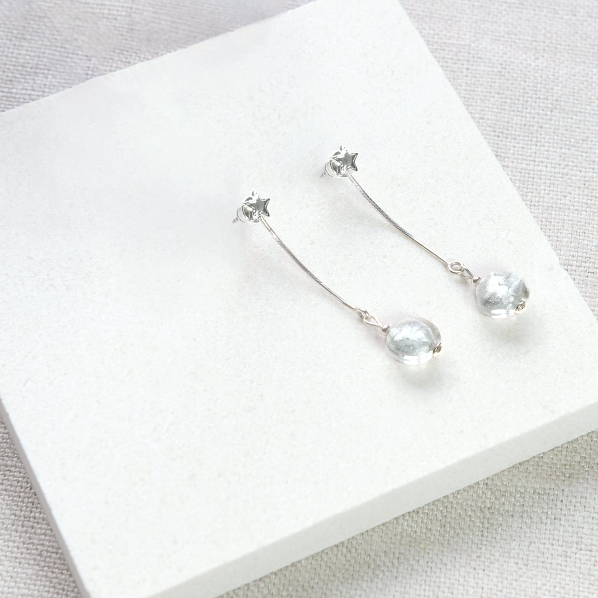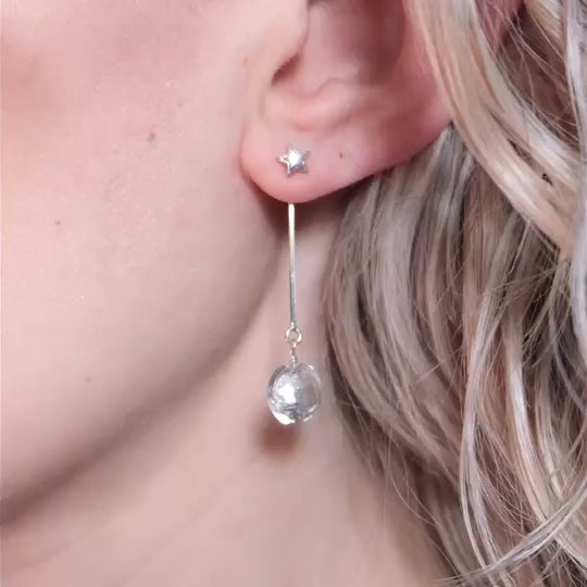 A sparkly star on a stud earring hovers above a Murano glass bead. The drop chain and bead are removable, so you can wear the star stud alone and enjoy two looks for the price of one!