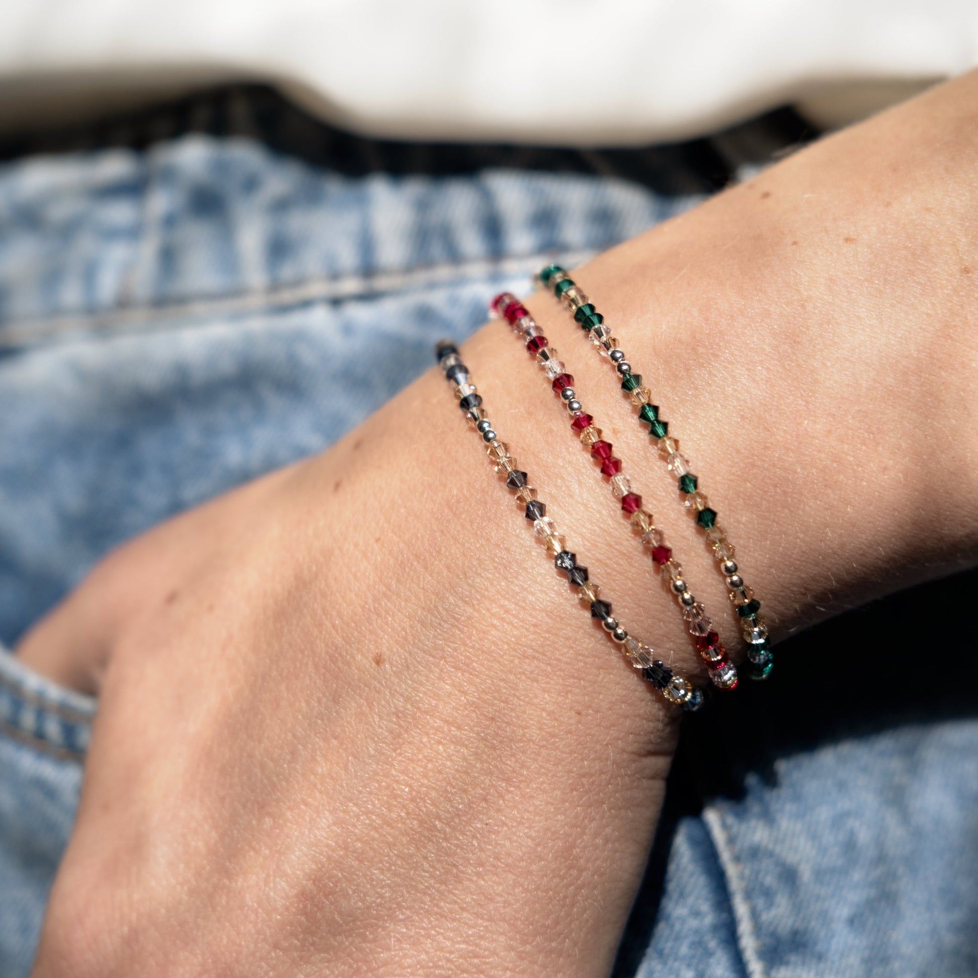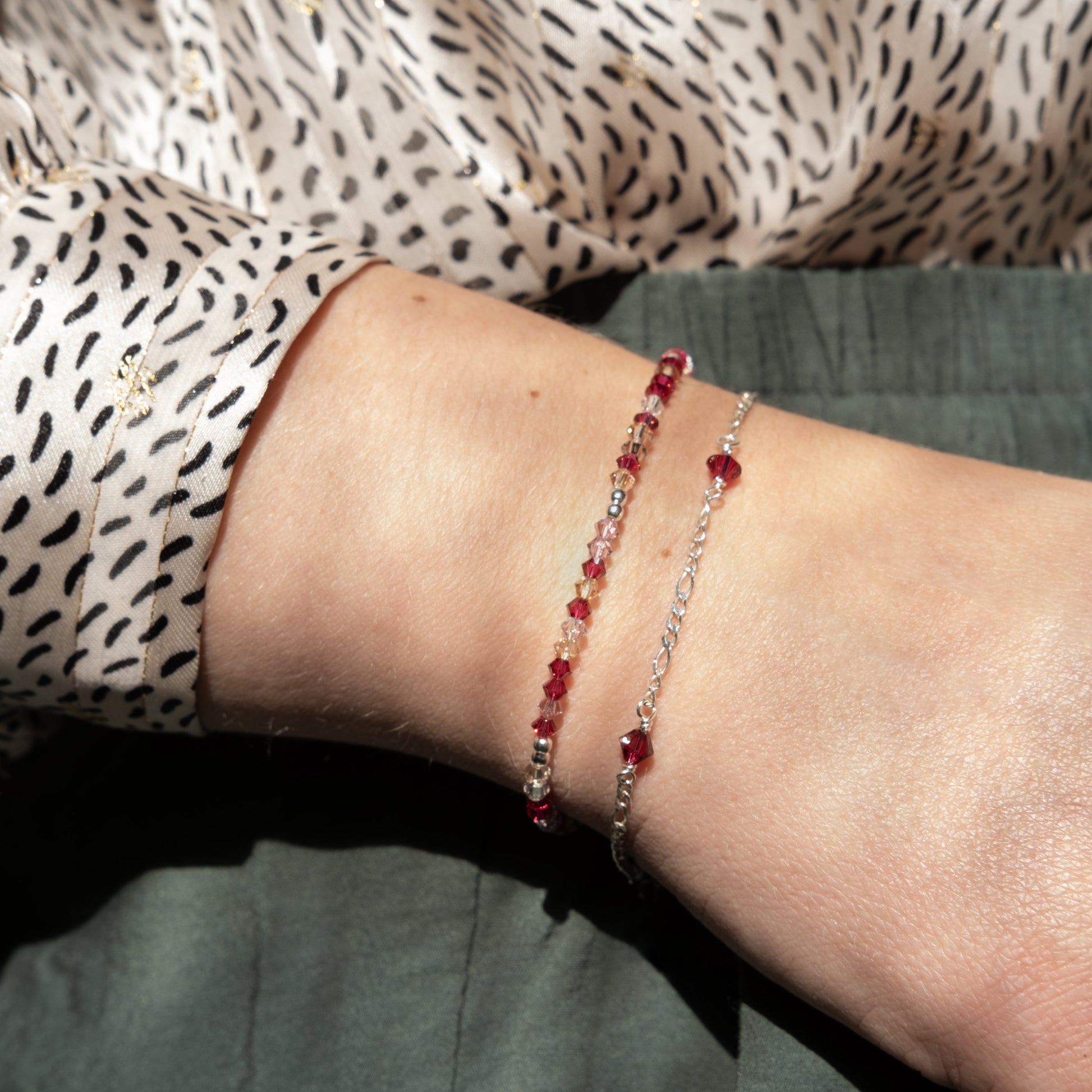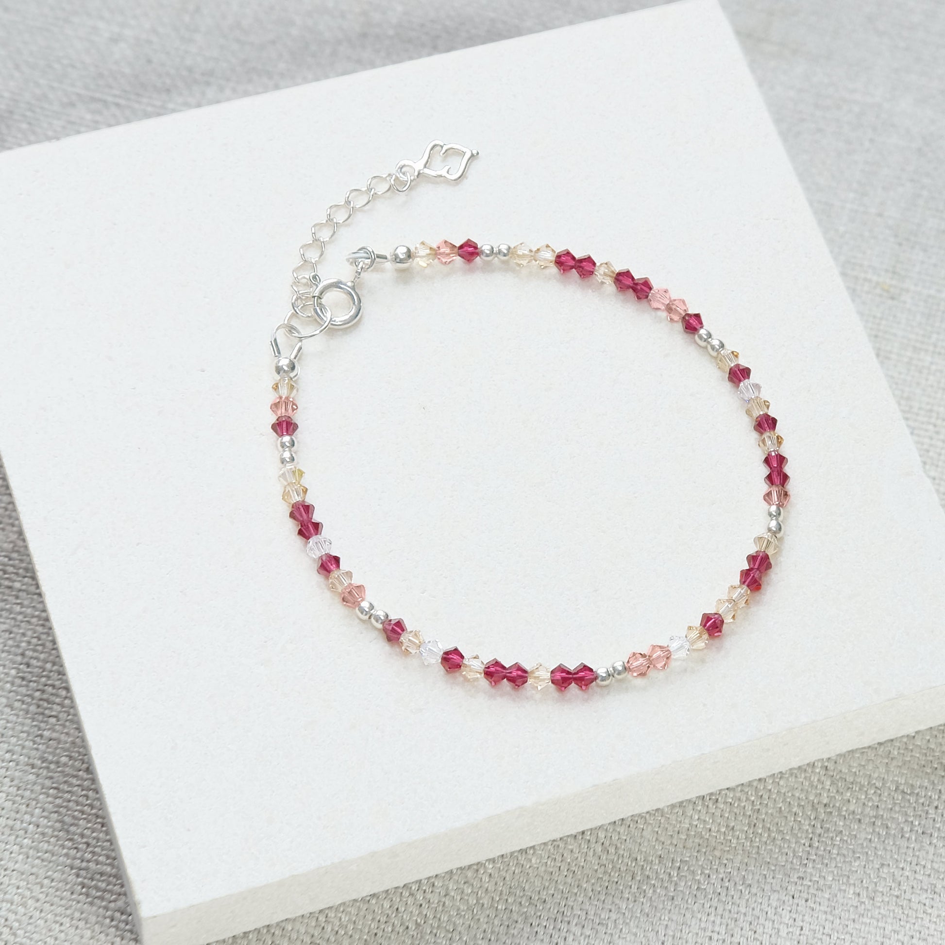 Add a little stardust to your life with our shimmering Swarovski stacking bracelets. Each crystal twinkles like a star with every turn of the wrist! A combination of ruby, pale pink and champagne tones perfectly accompany any outfit.