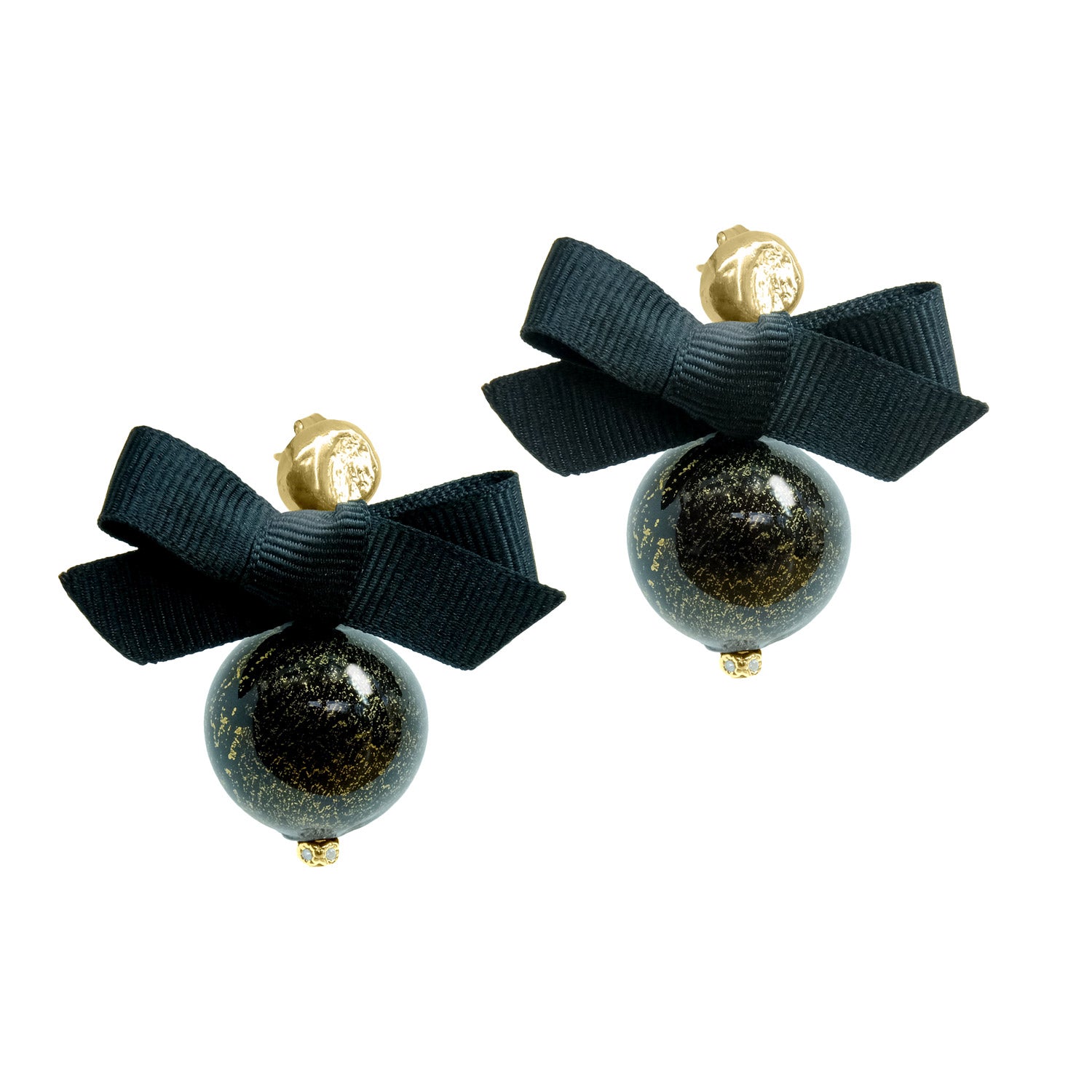 Meet Bollina, the perfect adornment to complete your special occasion outfit. Hand made with recycled silver studs and finished with a recycled ribbon and two gold speckled, hollow Murano glass statement bubbles.