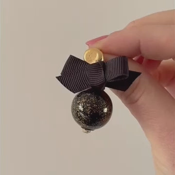 Meet Bollina, the perfect adornment to complete your special occasion outfit. Hand made with recycled silver studs and finished with a recycled ribbon and two gold speckled, hollow Murano glass statement bubbles.