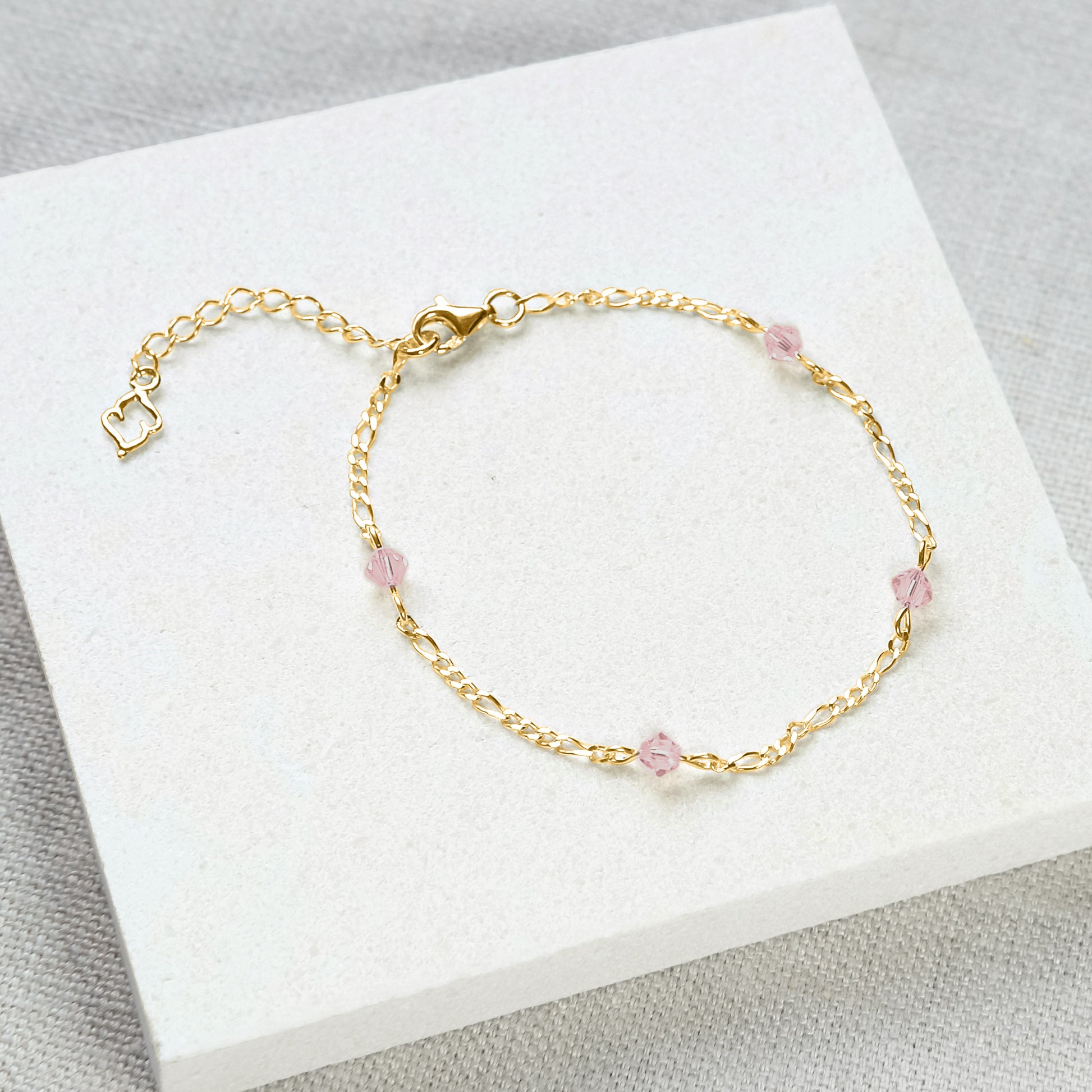 Stardrop Figaro Chain Bracelet - Dusty Pink/Gold Vermeil